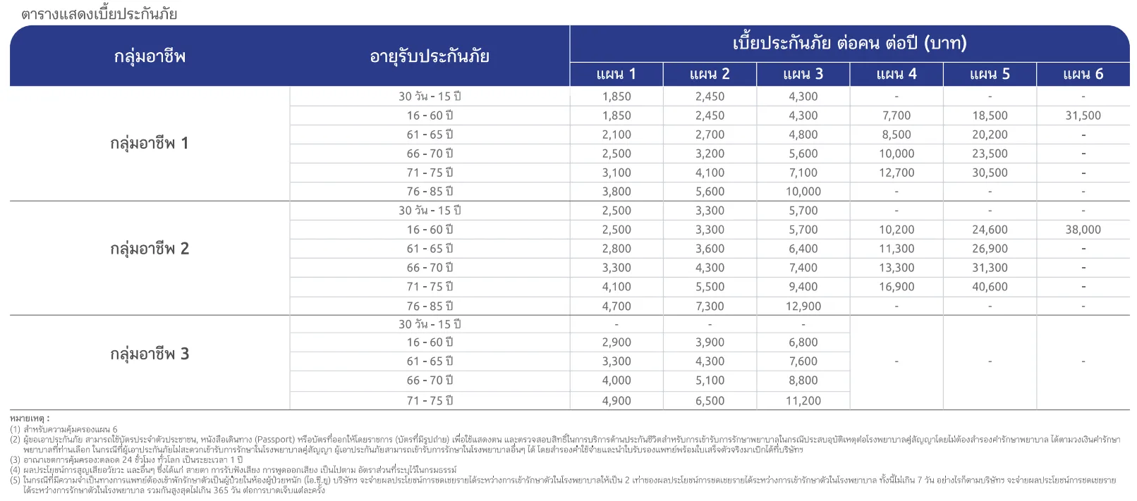 นายเมืองไทย อายุ 30 ปี พนักงานออฟฟิศ ซื้อประกัน PA PAYMAX แผน 2 เบี้ยประกัน ปีละ 2,450 บาท