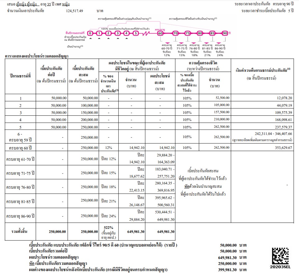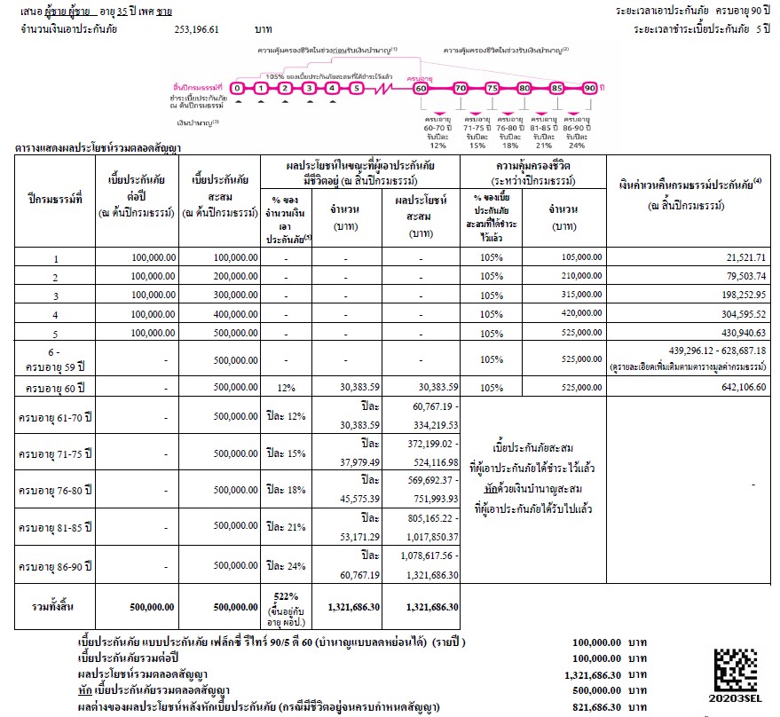 อายุ 60 ปี รับเงินคืน 12% ของทุนประกันปีละ 30,383.59 บาท