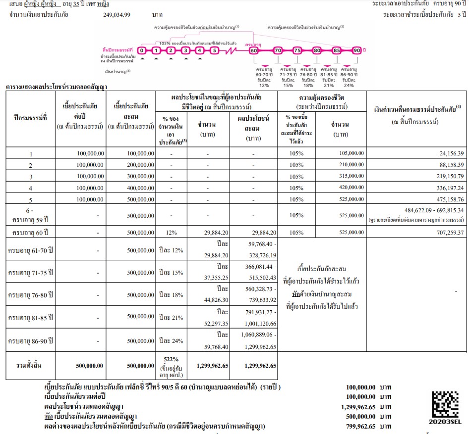 ตัวอย่างที่ 2 ผู้หญิงอายุ 35 ปี ทุนประกัน 249,034.99 บาท